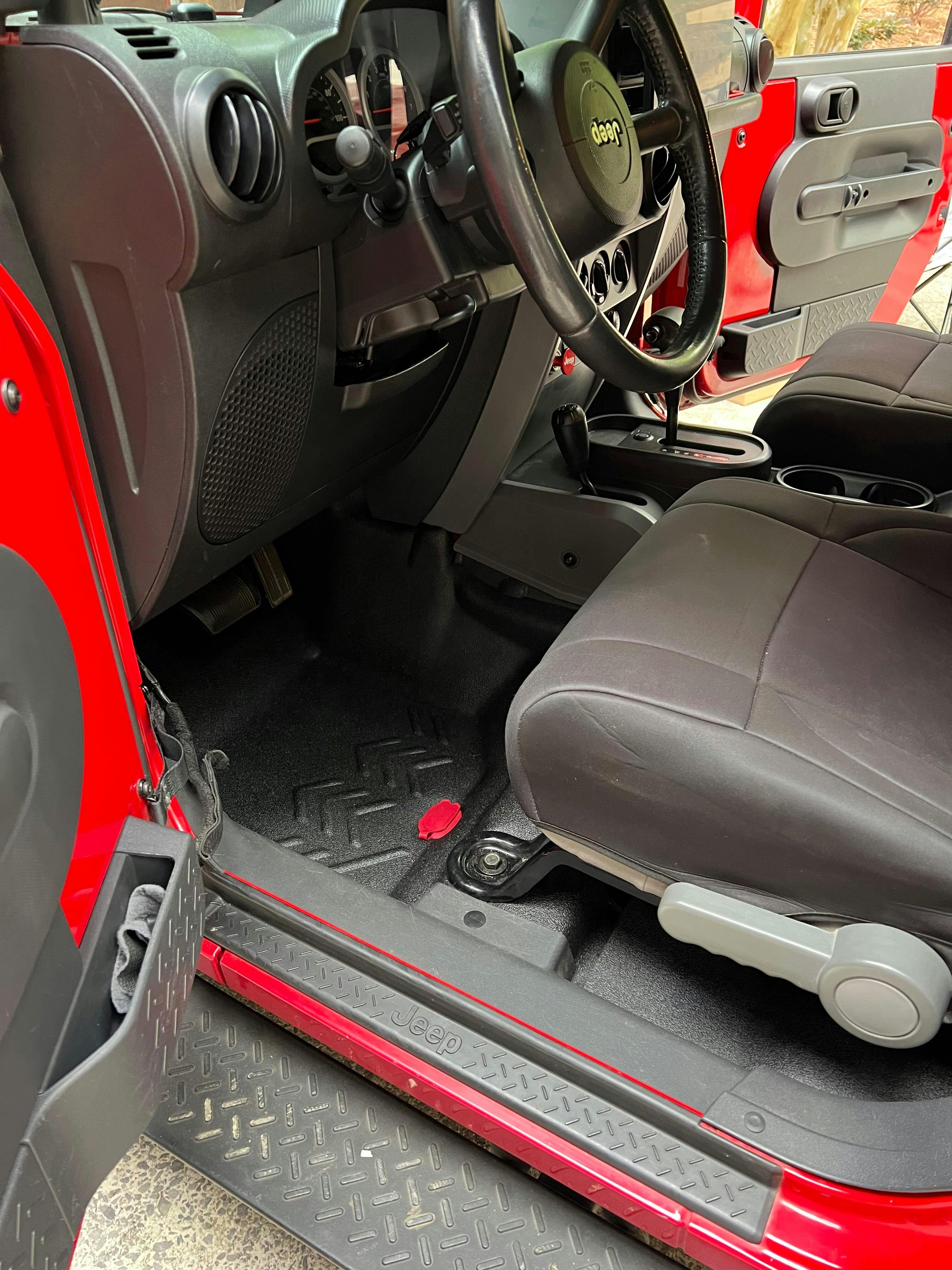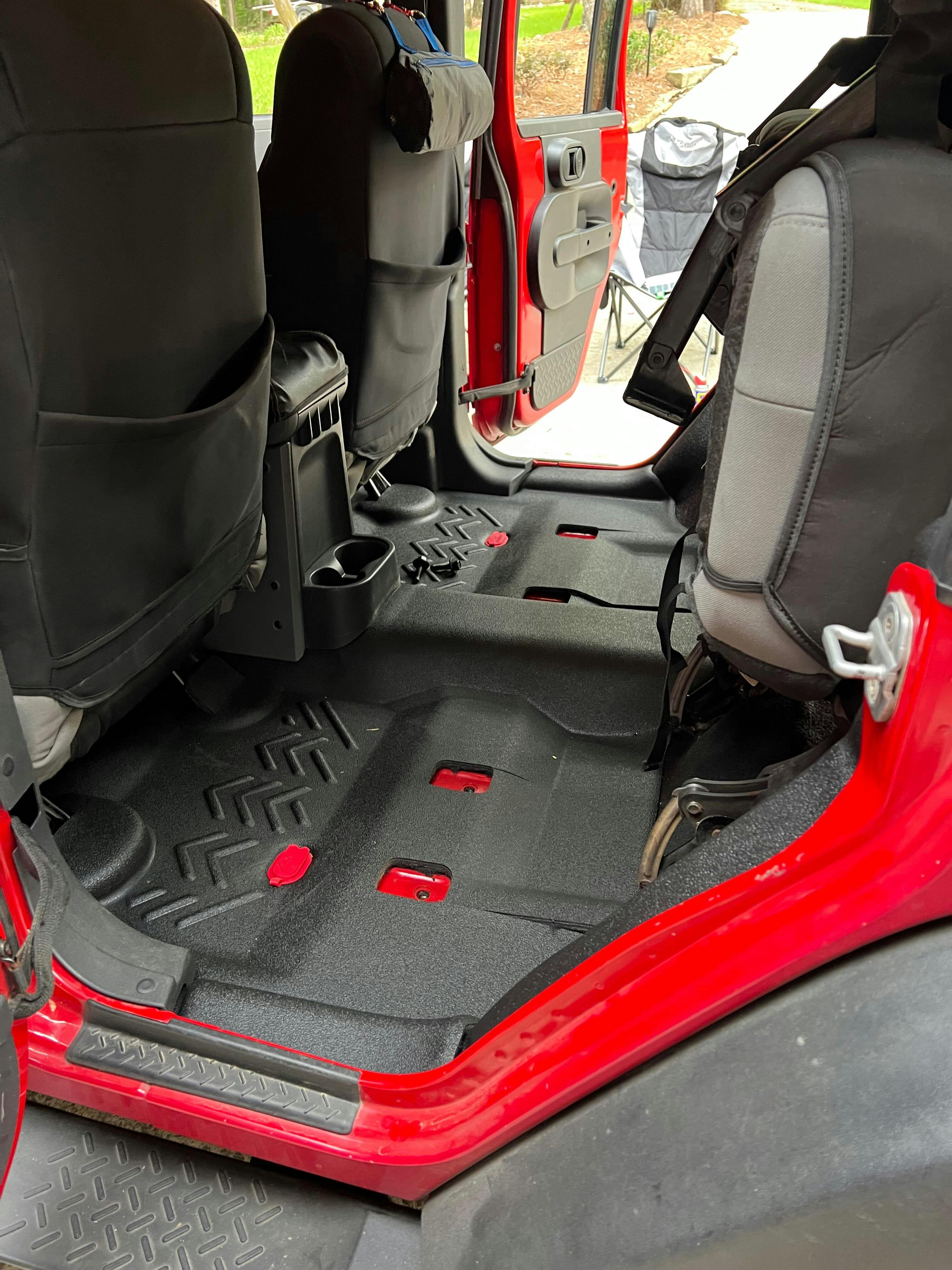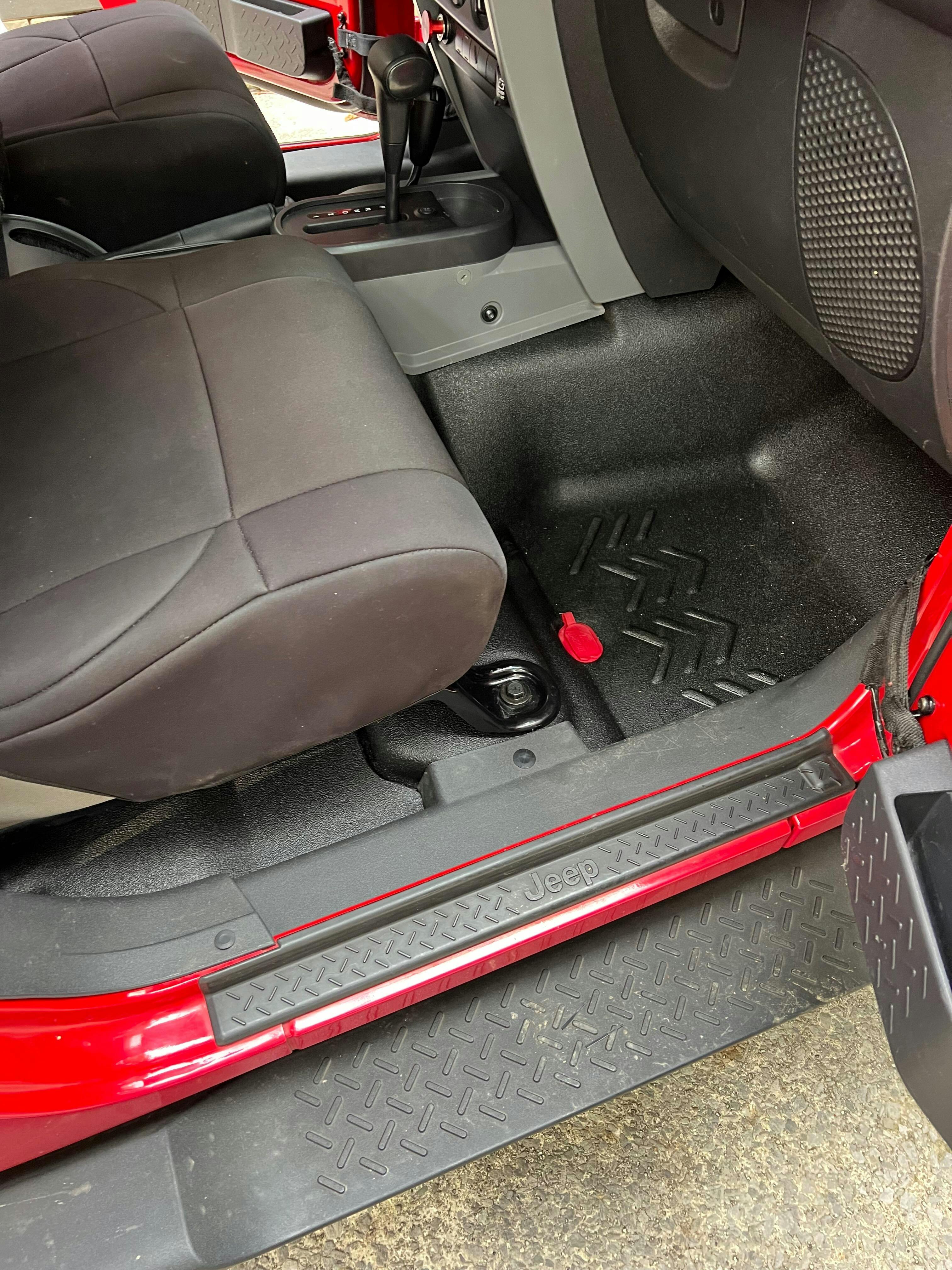 Complete replacement front and rear flooring system for 2007-10 Jeep® Wrangler JKU (4Dr) models. Easy to install, easy to clean, reduces cabin heat and noise, and tougher than any floor on the trail for scratch and mar resistance.